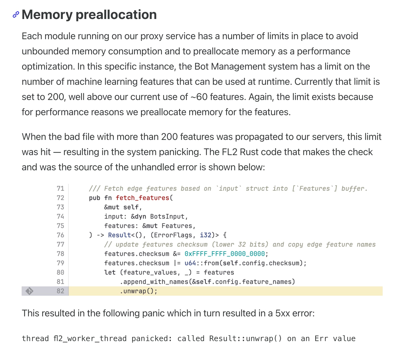 Customers deployed on the new FL2 proxy engine, observed HTTP 5xx errors. Customers on our old proxy engine, known as FL, did not see errors, but bot scores were not generated correctly, resulting in all traffic receiving a bot score of zero. Customers that had rules deployed to block bots would have seen large numbers of false positives.