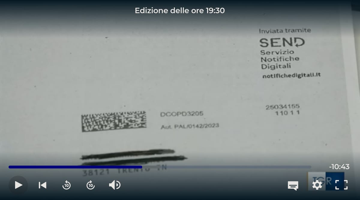 Il comune di Trento ha iniziato a notificare le multe (della polizia locale, presumo) tramite il sistema SEND (Servizio Notifiche Digitali), che tenta una notifica in formato digitale, cioè con app IO oppure PEC, prima di ricorrere alla raccomandata.