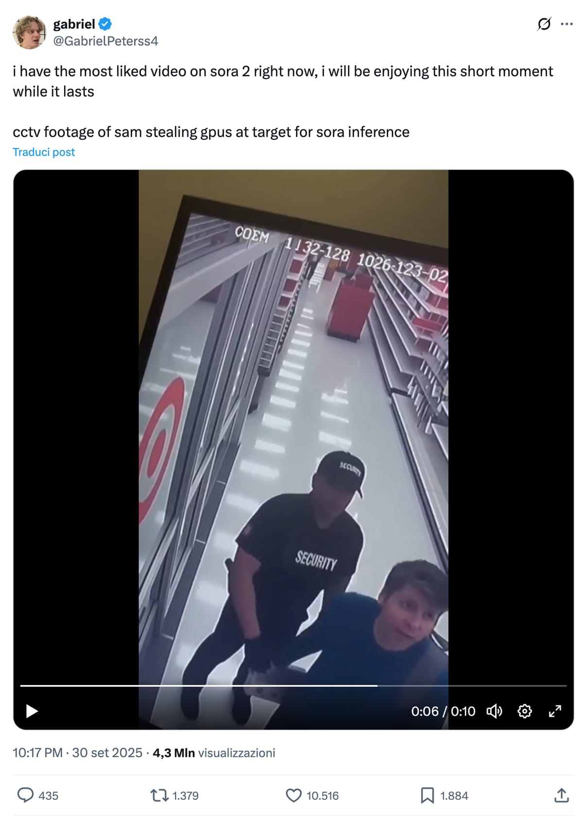 Un ricercatore OpenAI che lavora su Sora ha pubblicato casualmente un video generato con AI, e quindi totalmente falso, di Sam Altman che viene arrestato dopo aver rubato una GPU. Dovrebbe passare per la testa un dubbio, no?