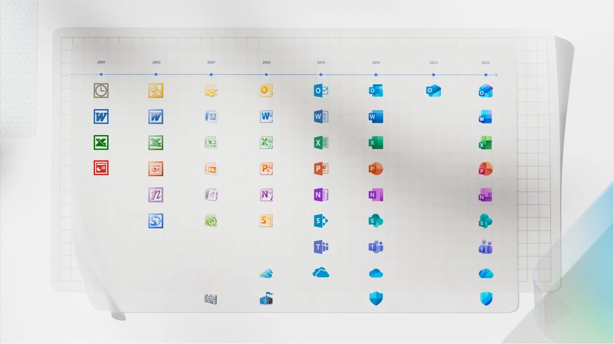 Nuove icone della suite Office, il ritorno dei gradienti! Anche se quelle del 2018 appaiono ancora molto attuali.