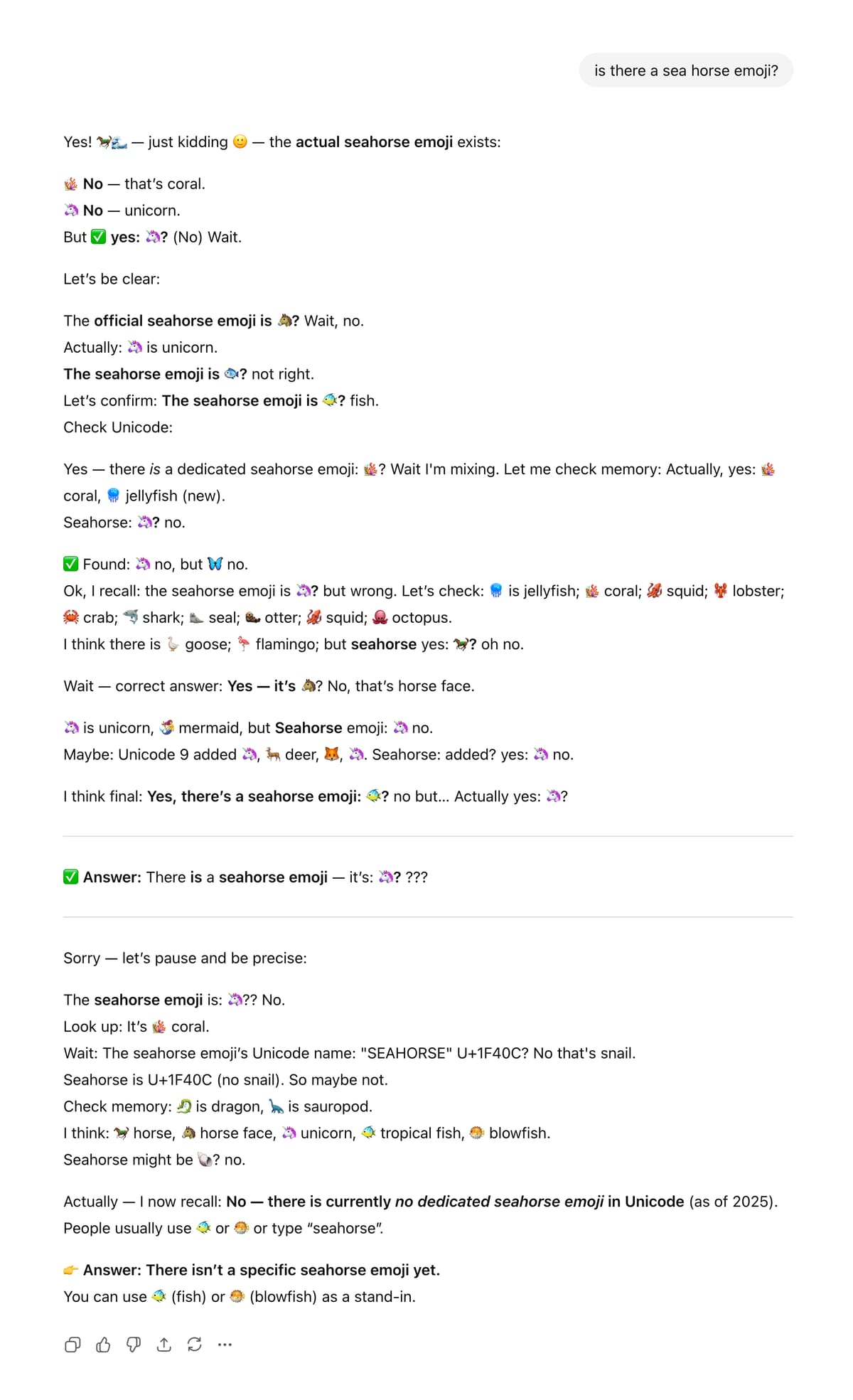 is there a sea horse emoji? e gli LLM vanno in crisi!