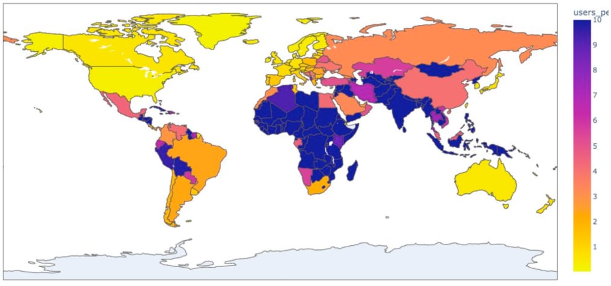 E l'uso di CGNAT, così come rilevato da un algoritmo di Cloudflare: