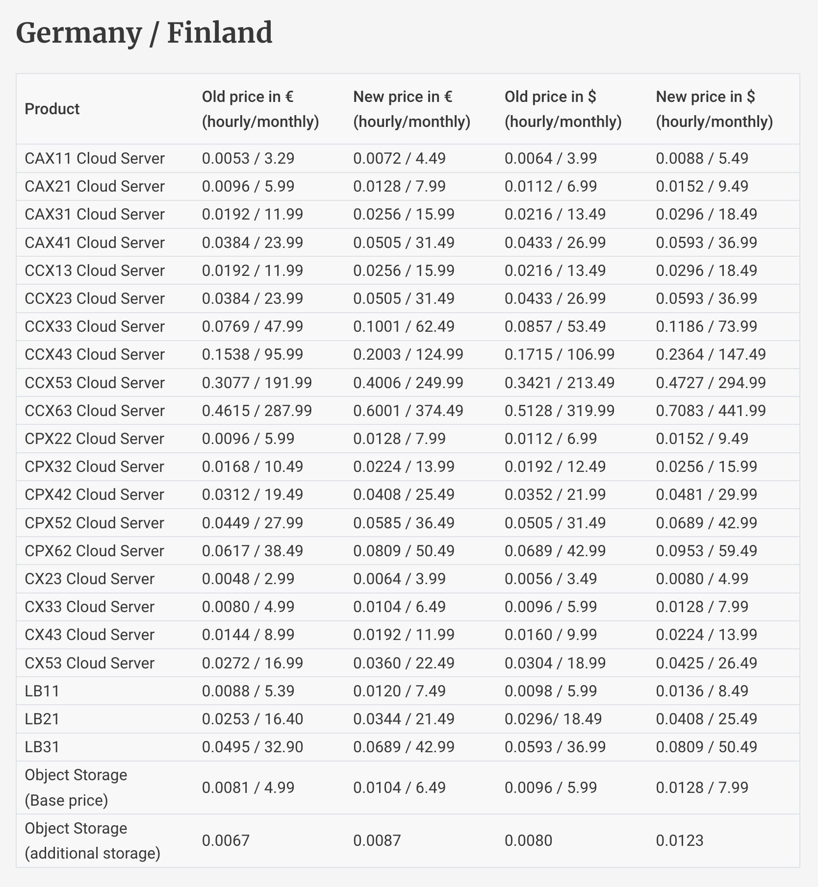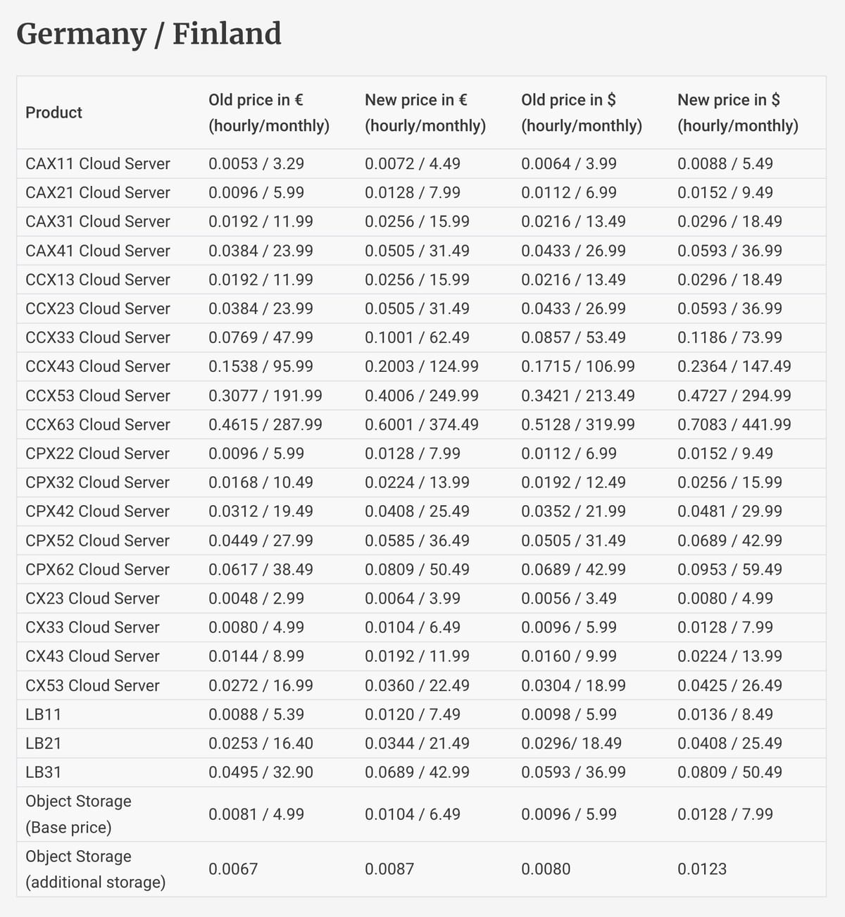 Ecco gli aumenti di prezzo di Hetzner che erano stati pre-annunciati qualche giorno fa.