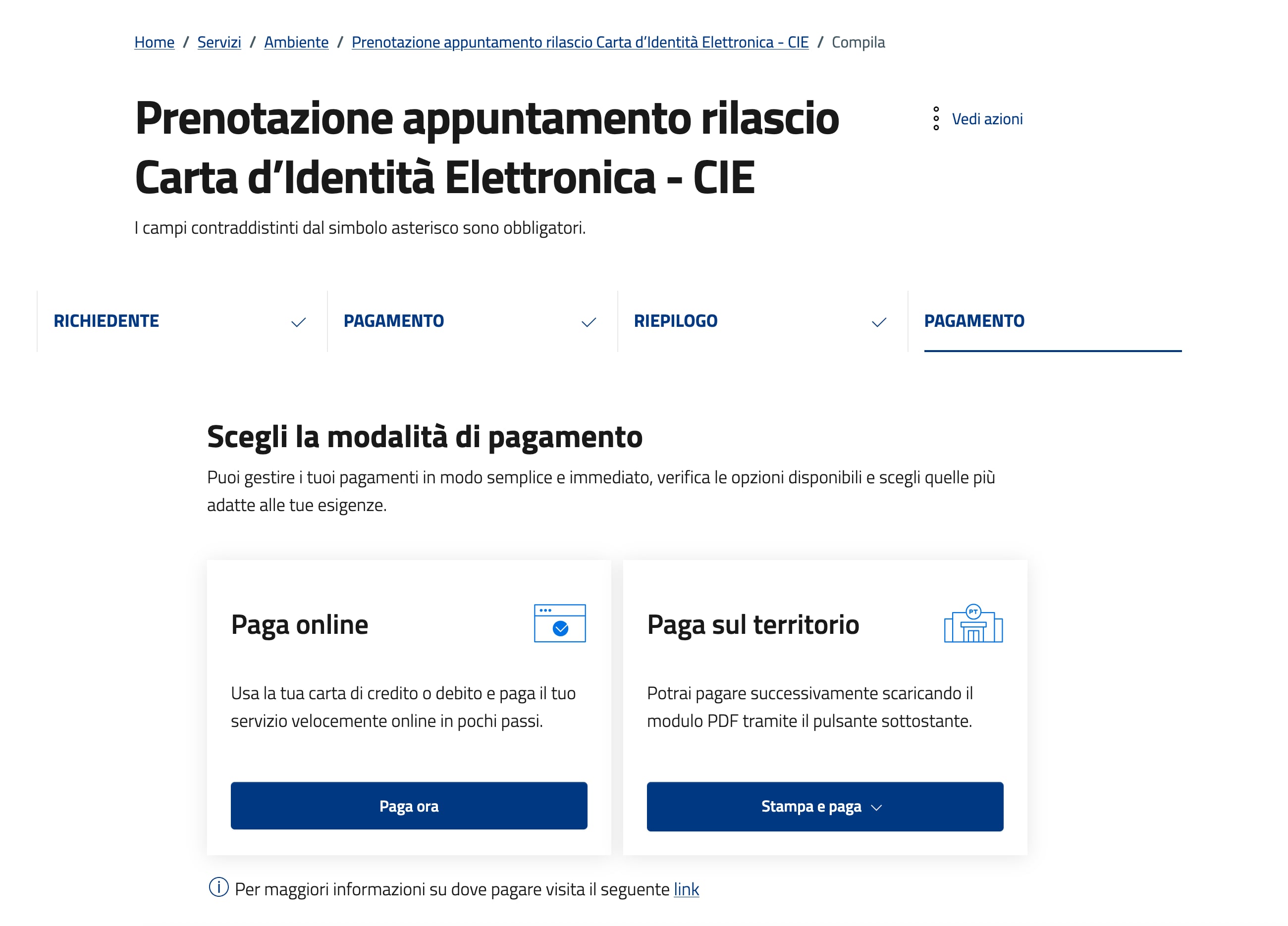 Prenoto un appuntamento CIE sul sito del mio comune: