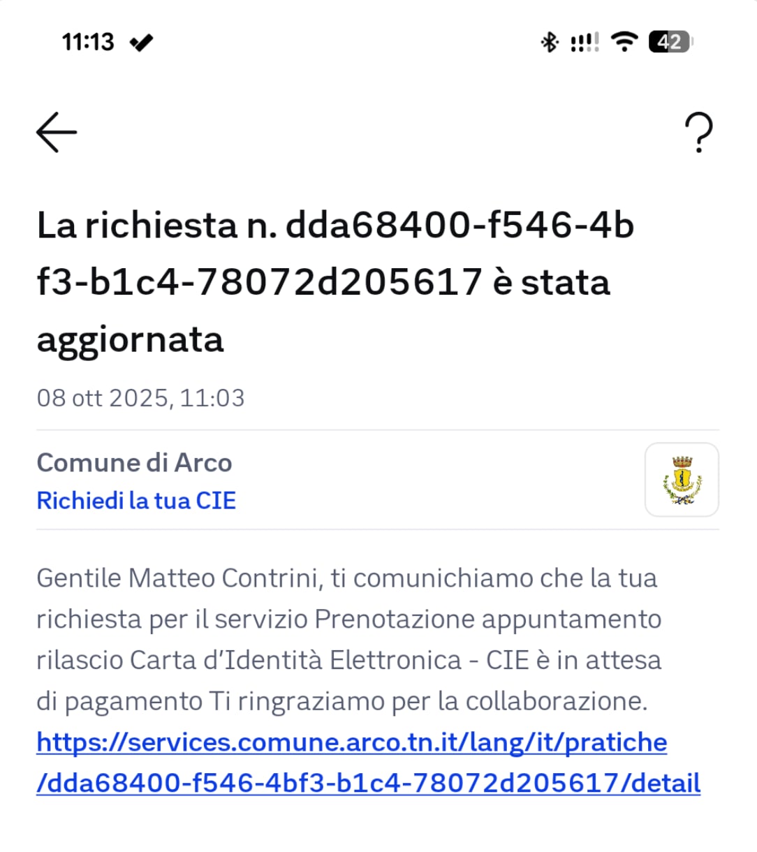 C'eravamo quasi, ma fatta così questa user experience è assurda. Dovevo ricevere il bollettino di pagamento dentro l'app IO e poter pagare da lì, è letteralmente la funzione principale dell'app (e funziona correttamente ad esempio con il pagamento del bollo auto).
