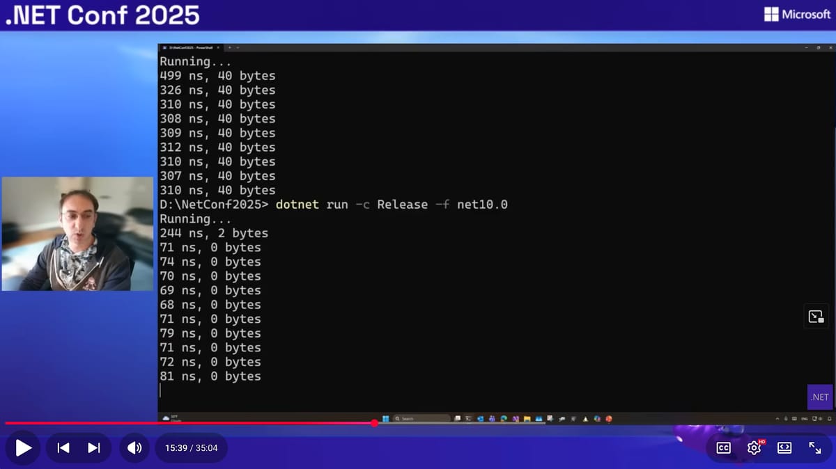 Performance Improvements in .NET 10: notevolissimi miglioramenti di prestazioni (CPU e memoria) in .NET 10, anche con ottimizzazioni delle espressioni regolari compilate.